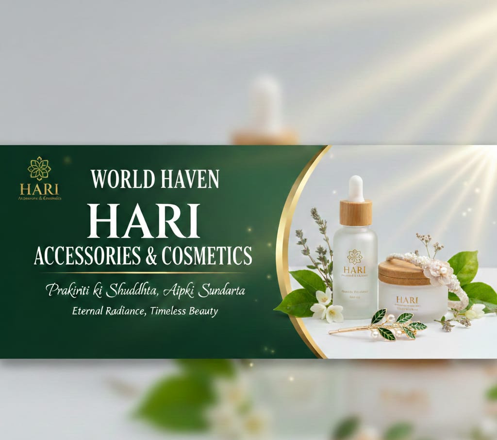 World Haven proudly presents ‘Hari Accessories & Cosmetics’—where nature’s purity meets timeless elegance. Our products are crafted to provide ‘Eternal Radiance’ and ‘Timeless Beauty,’ ensuring your skin receives the best of natural care. Experience the essence of ‘Purity of Nature, Your Beauty’ with our exclusive collection